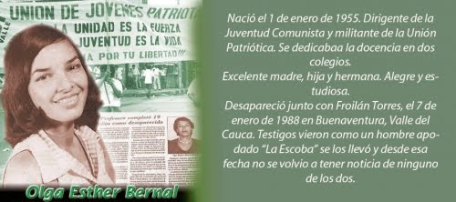 Olga era profesora de un jardín infantil en un humilde barrio de Cali. Provenía de la Juventud Comunista y se había vinculado a la Red Urbana de las FARC en esa ciudad, a comienzos de los años 80. Cuando la conocimos vivía con su pequeño hijo, cuyo padre había muerto en Nicaragua, luchando como internacionalista en las filas del Frente Sandinista de Liberación Nacional.